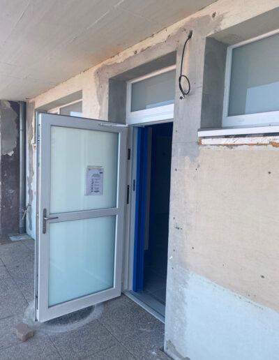 Le projet comprend la pose de fenêtres PVC, l’installation de portes d’entrée avec vitrage retardateur d’effraction et serrure motorisée, ainsi que la mise en place de tablettes intérieures et l’habillage complet des ébrasements pour une finition soignée et durable.