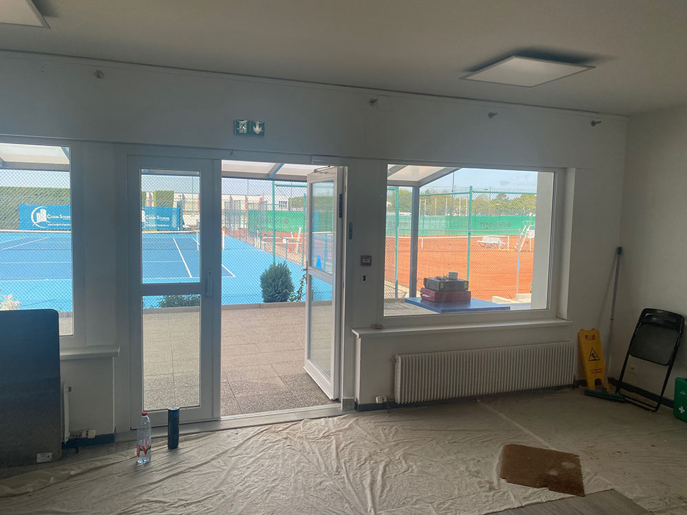 Dans le cadre de la rénovation d’un tennis club à Huningue / Saint-Louis, nos équipes ont réalisé le remplacement des menuiseries extérieures afin d’améliorer le confort thermique, la luminosité et la sécurité du bâtiment.