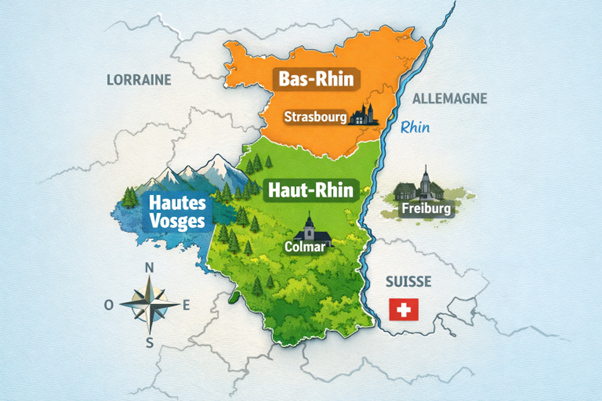 ● l’Alsace (Haut-Rhin et Bas-Rhin)